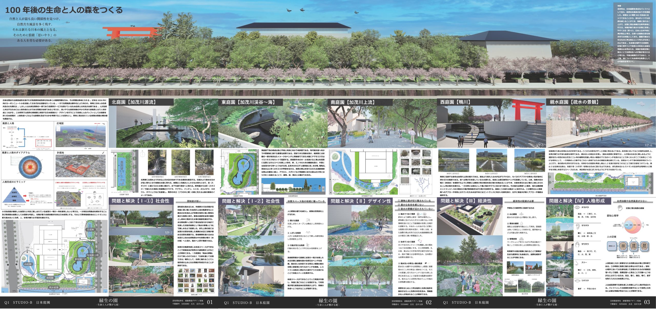 視点場2:100年後の森をイメージした庭園全体の風景